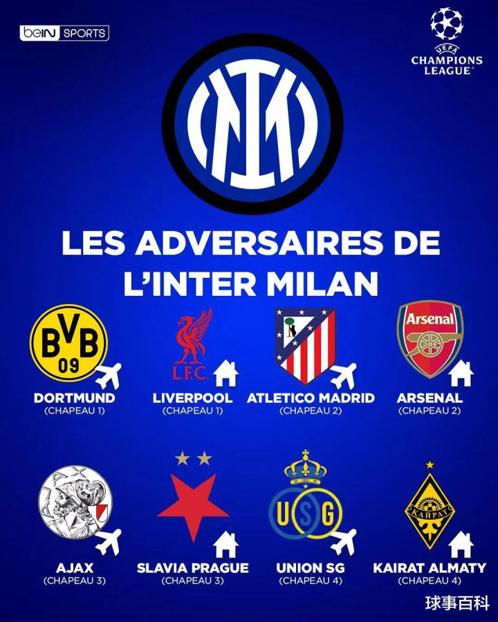 国际米兰:利物浦(主)、多特(客)、阿森纳(主)、马竞(客)、斯拉维亚(主)、阿贾克斯(客)、阿拉木图凯拉特(主)、圣吉罗斯(客)